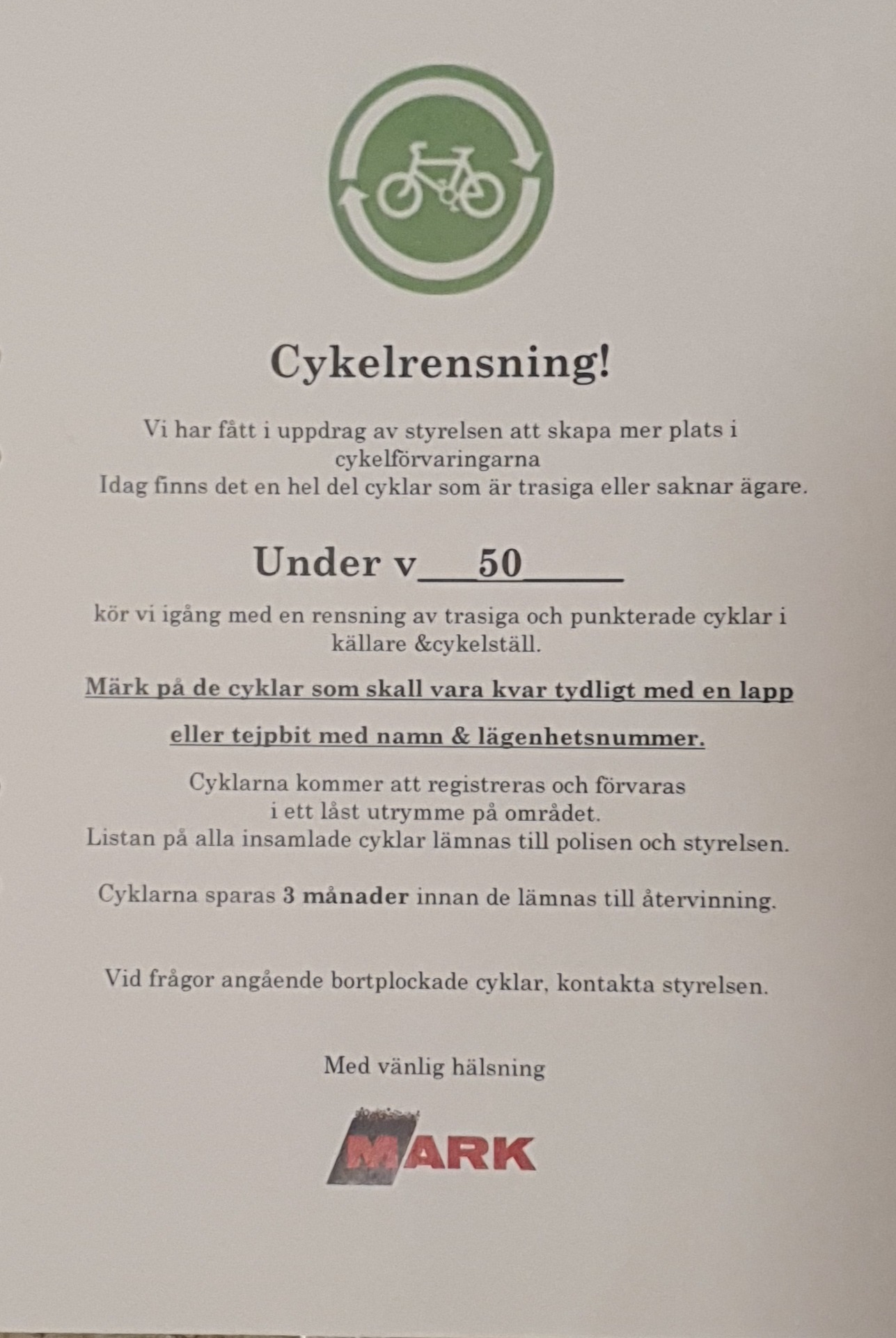 From. 1 april har vi anlitat MARK som fastighetsskötare hos oss. De kommer ta över de sysslor som HJT har utfört åt oss. Telefonnummer och annan information om dem kommer när det närmar sig.