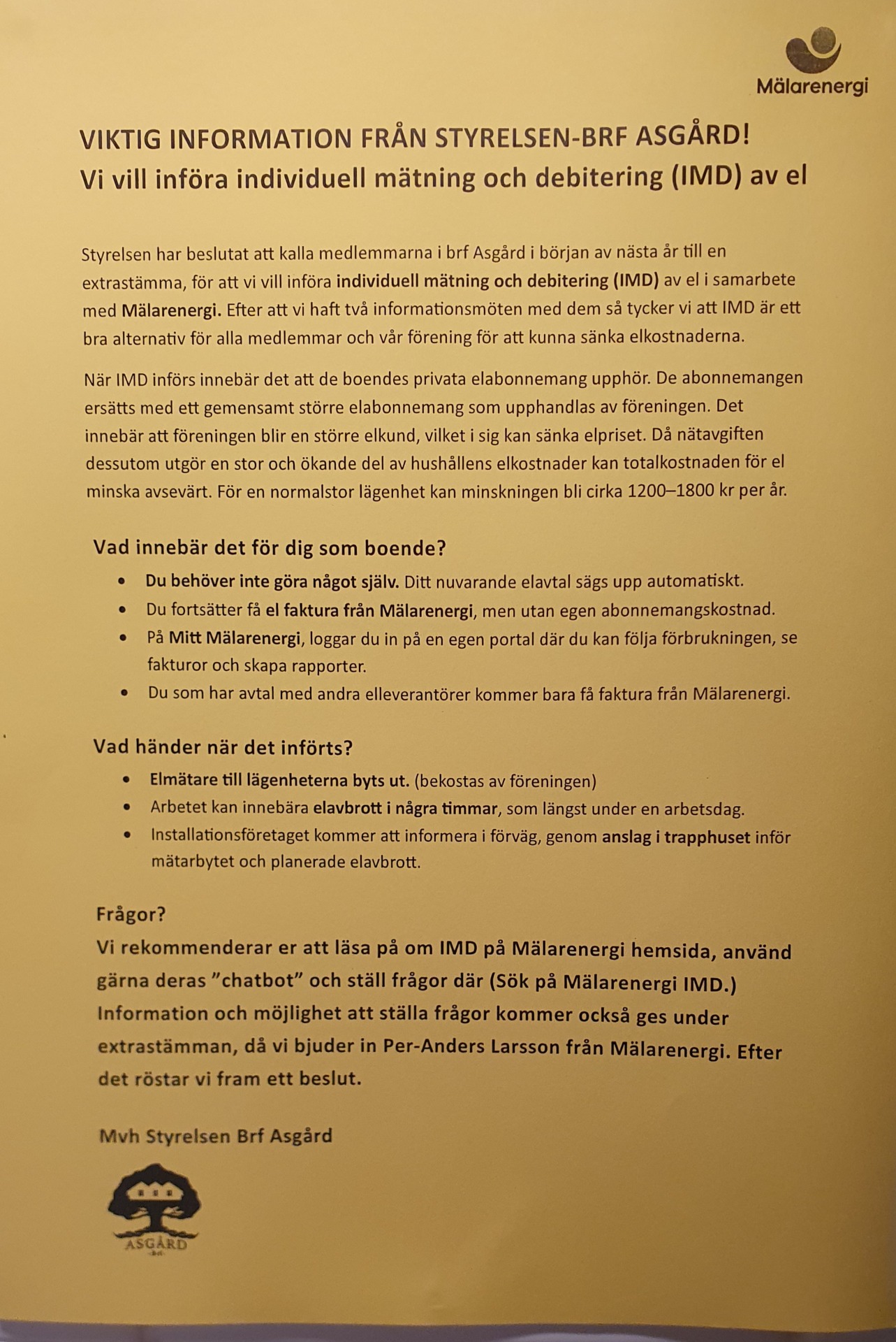 Vill passa på att göra alla uppmärksammade på att Mälarenergi har startat upp sina laddstolpar på parkeringen, se skyltningen. P-bevisen gäller inte där. Detta är något som vi i styrelsen inte har planerat eller haft någon makt över.