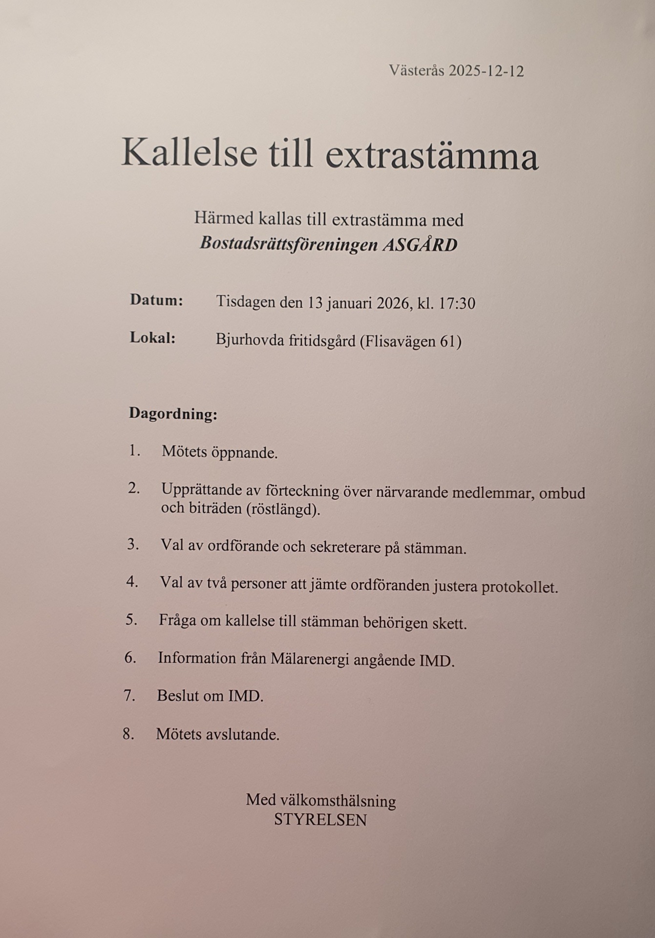 I september har vår förening, Brf Bjurhovda 10, bytt namn till Brf Asgård. Första förslaget "Balder", som röstades fram på ett årsmöte av närvarande medlemmar, blev avslaget av bolagsverket. Men däremot så blev alternativ två blev godkänt. Nu passar vi in i områdets Bostadrättsföreningars övriga namn som inspirerats av Sveriges förhistoria.